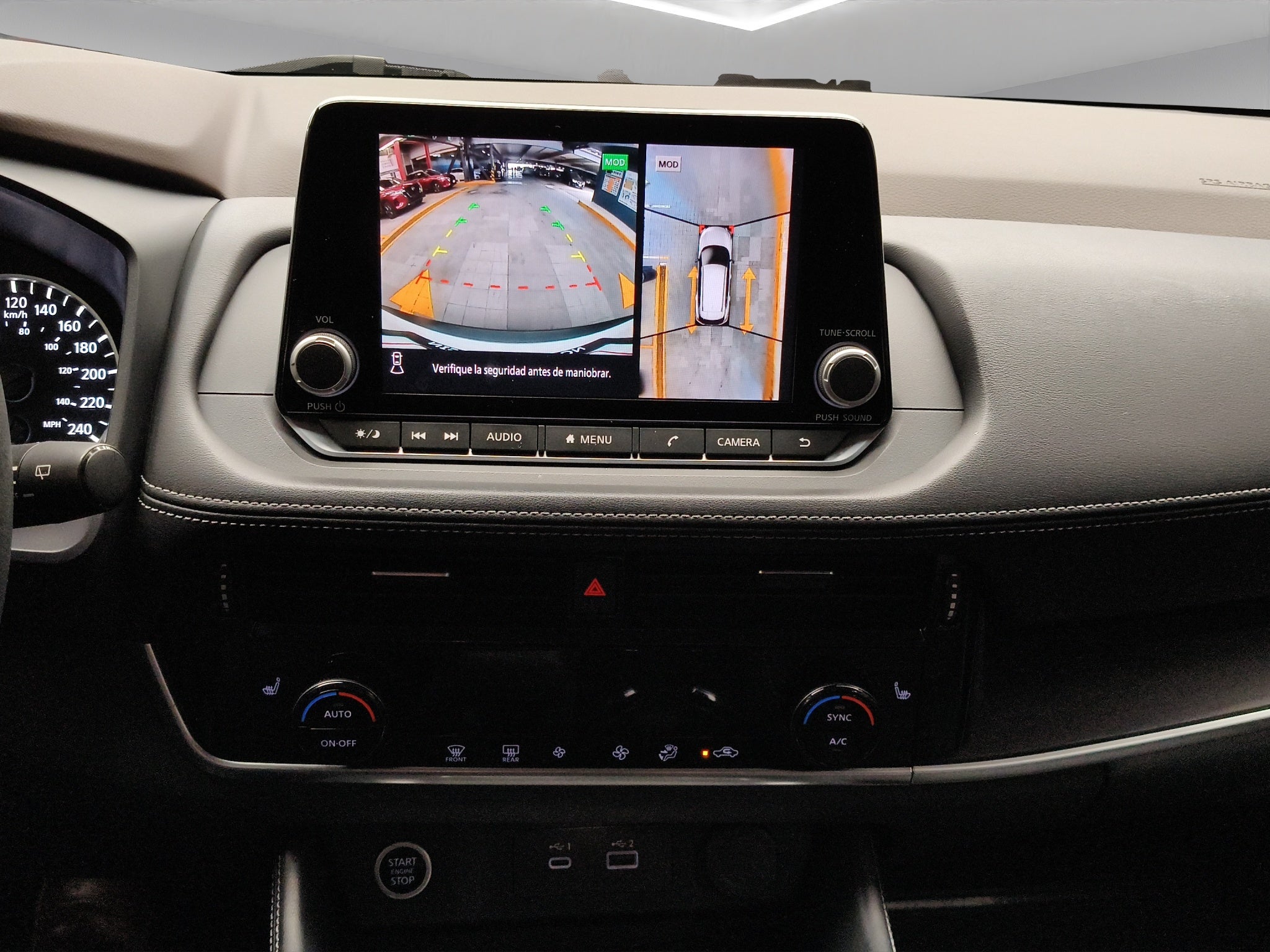 Especificaciones Técnicas Motorización: Cuenta con un motor de 2.5 L naturalmente aspirado que genera 181 hp y un torque de 180 lb-pie. Transmisión y Tracción: Utiliza una transmisión automática CVT (Xtronic) con paletas de cambio al volante y tracción delantera (2WD). Rendimiento: Ofrece un consumo de combustible combinado aproximado de 15.86 km/l. Dimensiones: Mide 4.64 m de largo 1.84 m de ancho y 1.69 m de alto con rines de aluminio de 18 pulgadas bitono. Equipamiento Destacado Esta versión mejora significativamente el confort respecto a la versión base (Advance): Interior: Asientos con vestiduras de piel ajuste eléctrico para conductor y pasajero (incluyendo ajuste lumbar) y aire acondicionado automático de doble zona. Tecnología: Pantalla táctil de 8 pulgadas compatible con Apple CarPlay y Android Auto sistema de audio de 6 bocinas monitor avanzado de asistencia de 7 pulgadas y cargador inalámbrico para smartphone. Exterior: Faros LED faros de niebla rieles integrados en el toldo y espejos laterales eléctricos con luces direccionales. Seguridad (Nissan Intelligent Mobility) Protección pasiva: 6 bolsas de aire (frontales laterales y de cortina). Asistencias activas: Monitor Inteligente de Visión Periférica (Cámara 360°) con detección de objetos en movimiento. Frenado Inteligente de Emergencia con detección de peatones. Alerta de punto ciego y alerta de tráfico cruzado trasero.